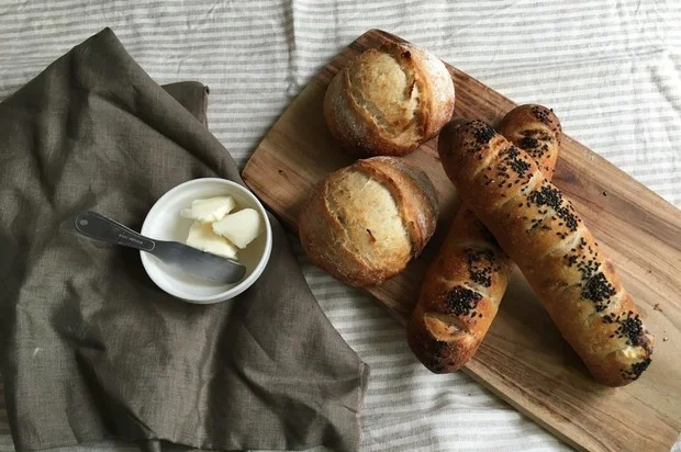 酒粕を使った酵母で焼きあげましょう。一品目はプレーンの生地に希少なカルピスバターをちょこっとのせてこんがり焼き上げます。もう一品は自家製ほっこりあんこと、意外にも相性の良いクリームチーズを巻き込んだハードパンです。