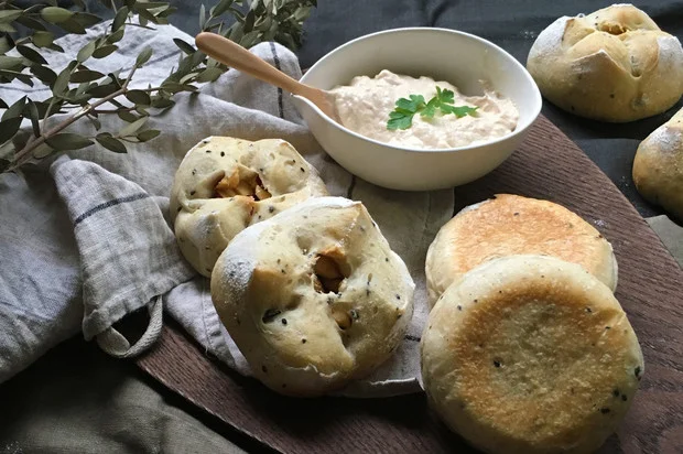 自家製酵母パン!雑穀マフィン&さつまいも雑穀あんパン、豆腐ツナディップ