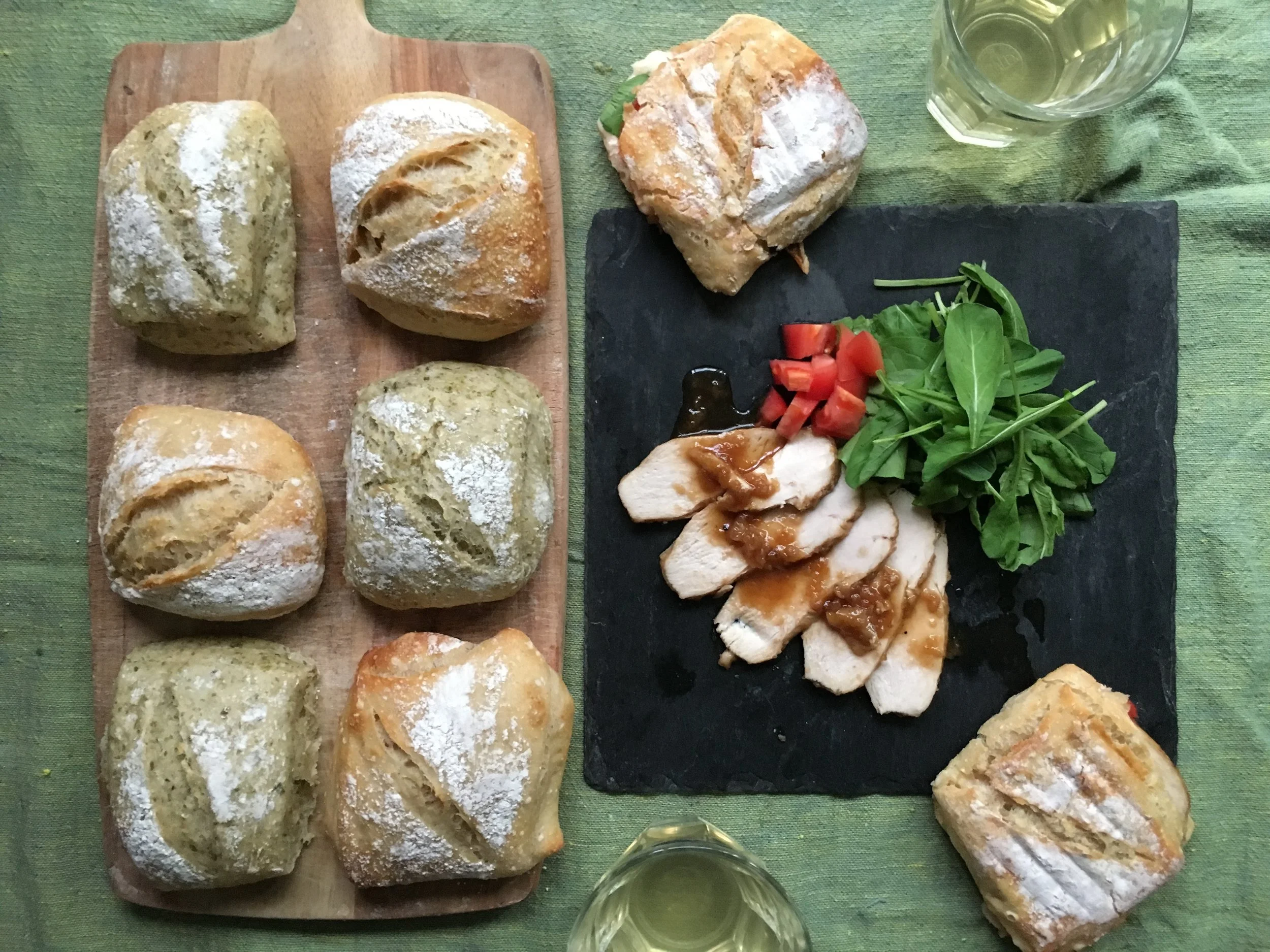酒粕酵母パン!高加水チャバタ、プレーン&青のり、和風酵母チキンパニーニ